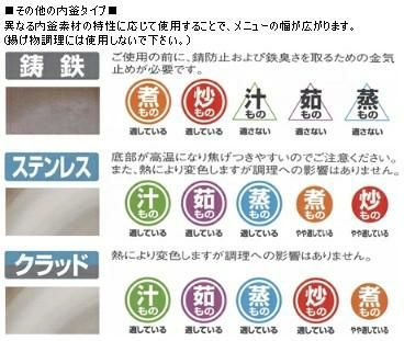 異なる内釜素材の特性に応じて使用することで、メニューの幅が広がります。