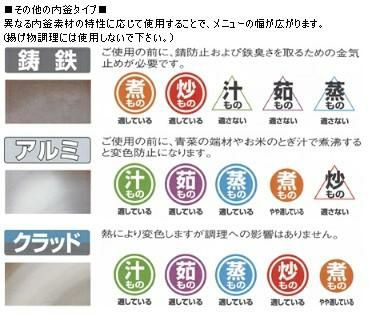 異なる内釜素材の特性に応じて使用することで、メニューの幅が広がります。