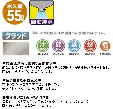 商品名:ガス回転釜 55L W1255×D862×H780 クラッド製 釜底排水付