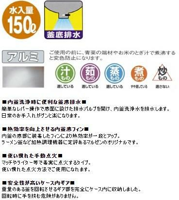 商品名:ガス回転釜 150L W1435×D1042×H820 アルミ製 釜底排水付