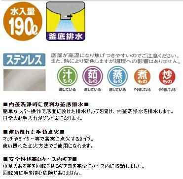 商品名:ガス回転釜 190L W1525×D1132×H880 ステンレス製 釜底排水付