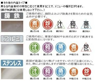 異なる内釜素材の特性に応じて使用することで、メニューの幅が広がります。