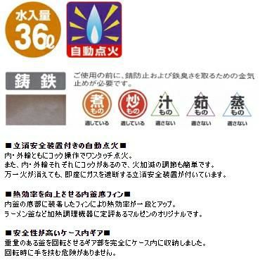 商品名:ガス回転釜 36L W1155×D762×H780 鋳鉄製 自動点火式