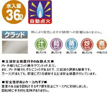商品名:ガス回転釜 36L W1155×D762×H780 クラッド製 自動点火式