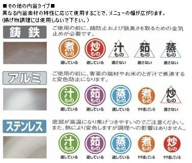 異なる内釜素材の特性に応じて使用することで、メニューの幅が広がります。