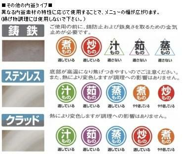 異なる内釜素材の特性に応じて使用することで、メニューの幅が広がります。