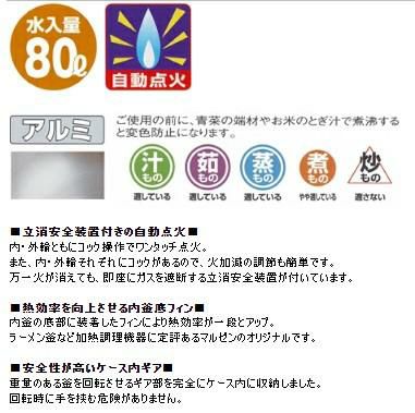 商品名:ガス回転釜 80L W1310×D917×H780 アルミ製 自動点火式