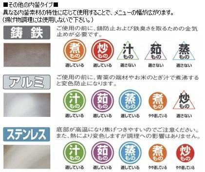 異なる内釜素材の特性に応じて使用することで、メニューの幅が広がります。