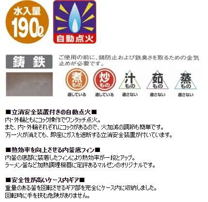 商品名:ガス回転釜 190L W1525×D1132×H880 鋳鉄製 自動点火式