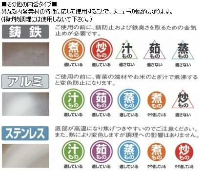 異なる内釜素材の特性に応じて使用することで、メニューの幅が広がります。