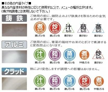 異なる内釜素材の特性に応じて使用することで、メニューの幅が広がります。