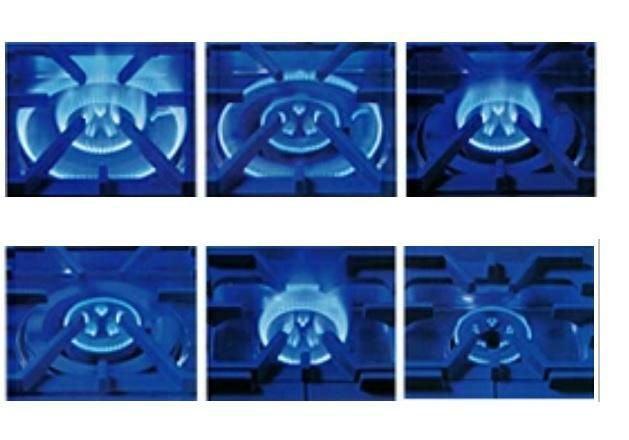 左から、2重バーナー内外輪・強火、2重バーナー内外輪・弱火、2重バーナー内輪・強火