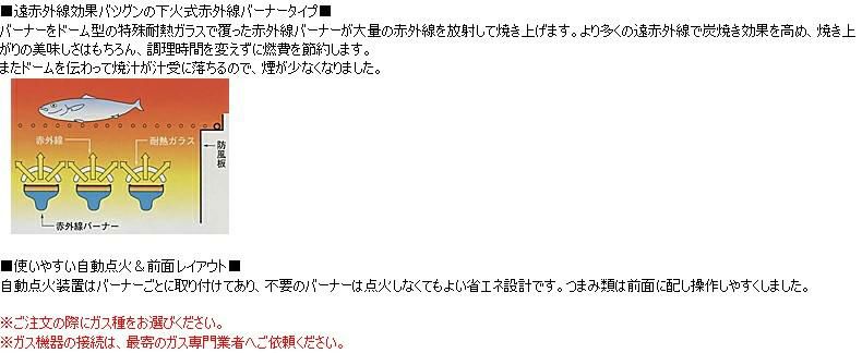 商品名:ガス 下火式焼物器 赤外線バーナータイプ