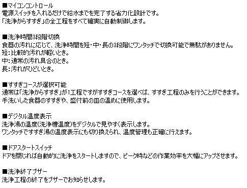 ●すすぎ湯使用量:4L/ラック(3.5から7.0で変更可能)