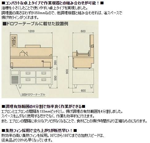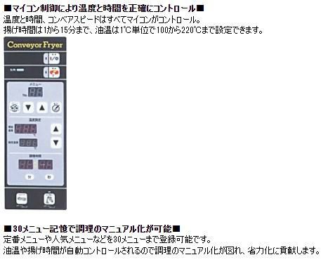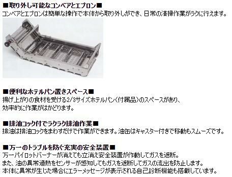商品名:ガス卓上エプロン式コンベアフライヤー 油量18リットル マイコン搭載