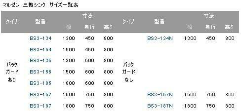 | バック ガード あり | BS3-134 | 1300 | 450 | 800 | バック ガード なし | BS3-134N | 1300 | 450 | 800 |