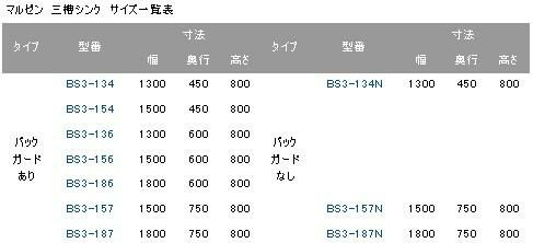 | バック ガード あり | BS3-134 | 1300 | 450 | 800 | バック ガード なし | BS3-134N | 1300 | 450 | 800 |