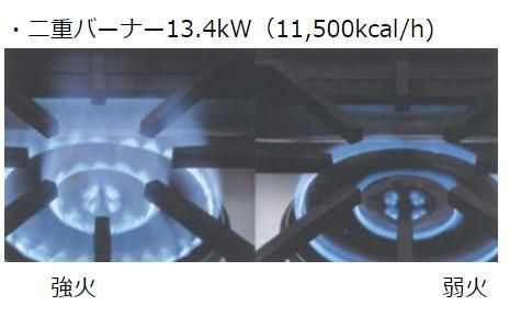 ・二重バーナー13.4kW(11,500kcal/h)