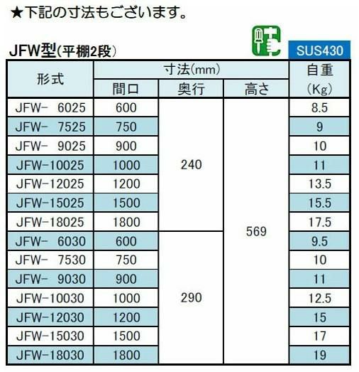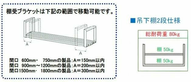 【シンコー】吊下棚2段 平 幅750×奥行290×高さ569 [JFW-7530]