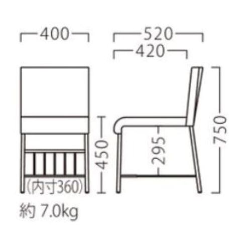 外形寸法:幅400×奥行520×高さ750 シート高450(mm)