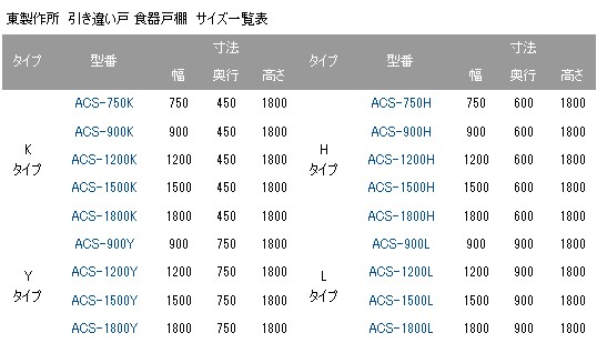 【東製作所】食器棚 ACS-900K 幅900×奥行450×高さ1800mm