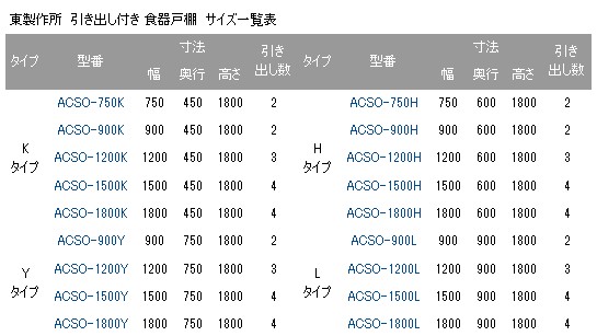 【東製作所】食器棚 引出付 引出4 ACSO-1800K 幅1800×奥行450×高さ1800mm
