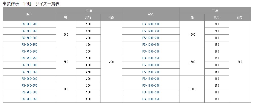 【東製作所】平棚 FS-1200-350 幅1200×奥行350×高さ200mm