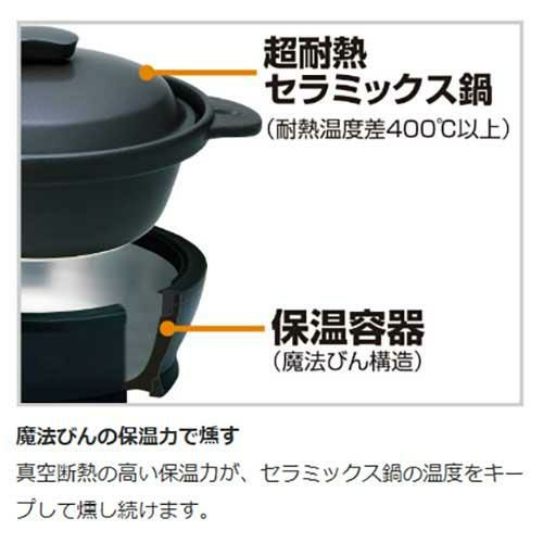 魔法びん構造の保温熱でじっくりと燻すので、食材が硬くならず、とてもやわらかく仕上がります。