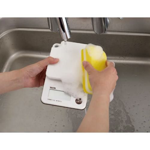 ・防水仕様で丸洗いができるから、料理中に汚れた手で使っても、お子さまが粉などで汚してしまっても、すぐに洗えて、いつでも簡単に清潔・キレイな状態に。衛生的にも安心なクッキングスケールです。