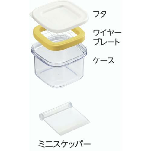 材質:フタ/ポリエチレン(耐熱温度80度/耐冷温度-30度)、ケース/AS樹脂(耐熱温度70度/耐冷温度-30度)、ワイヤープレート枠/ABS樹脂(耐熱温度80度/耐冷温度-30度)、ミニスケッパー/ポリプロピレン(耐熱温度100度/耐冷温度-30度)、ワイヤー/18-8ステンレス鋼