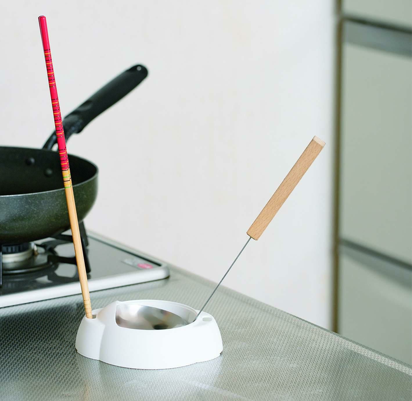 底が深いので、おたまを安定して立てられます。分解して洗浄できます。菜箸も立てる事ができます。