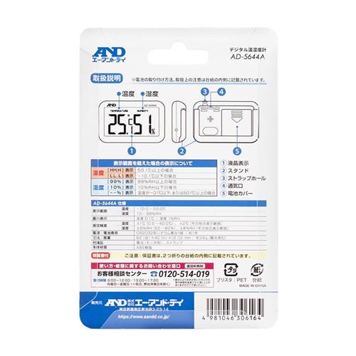 商品名:A&D デジタル温湿度計 AD-5644A 白/業務用/新品/小物送料対象