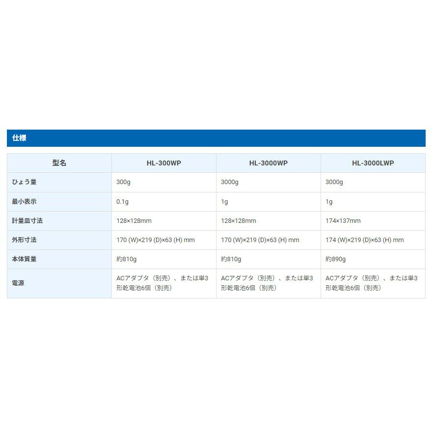 HL-3000LWP(ひょう量:3000g 最小表示:1g) はこちら