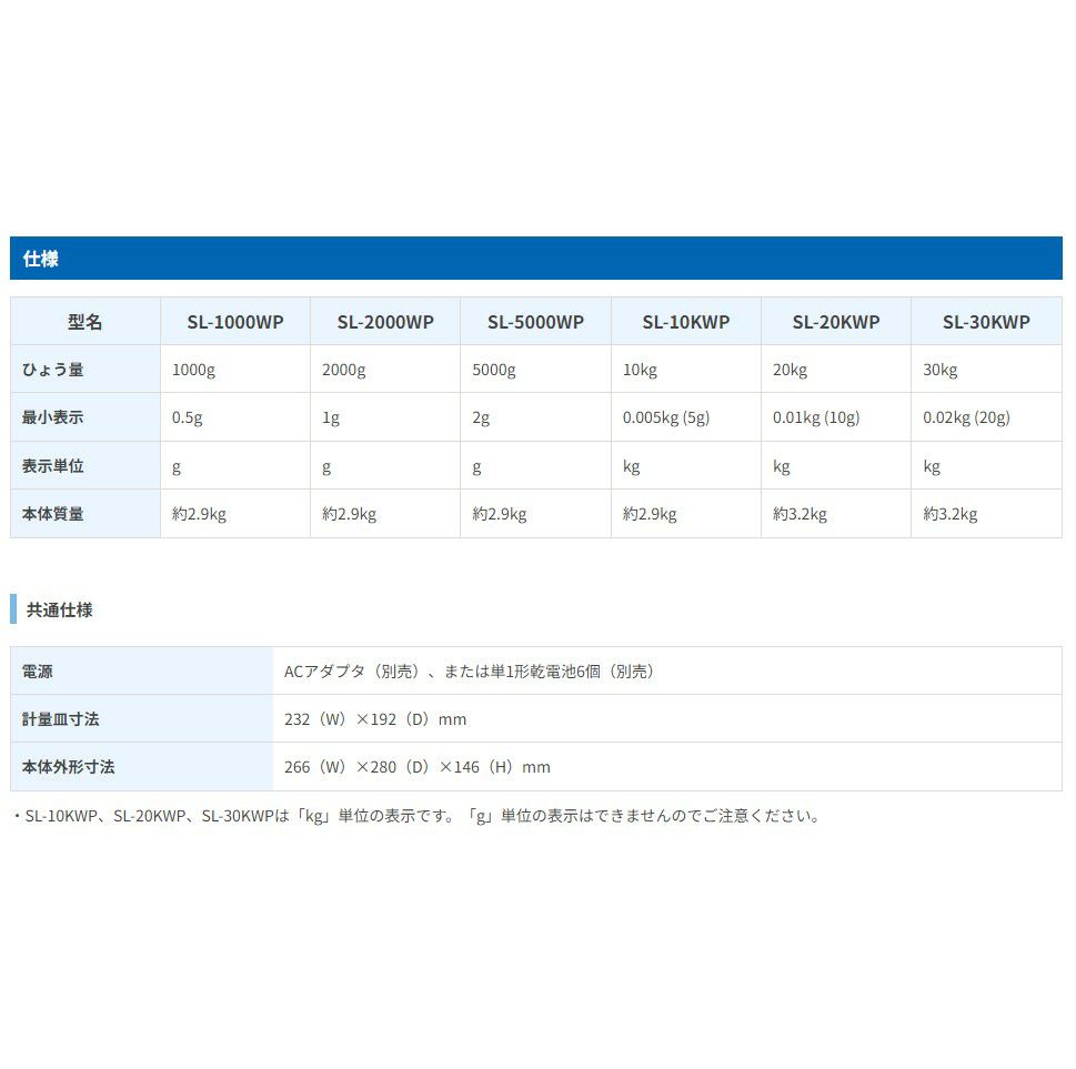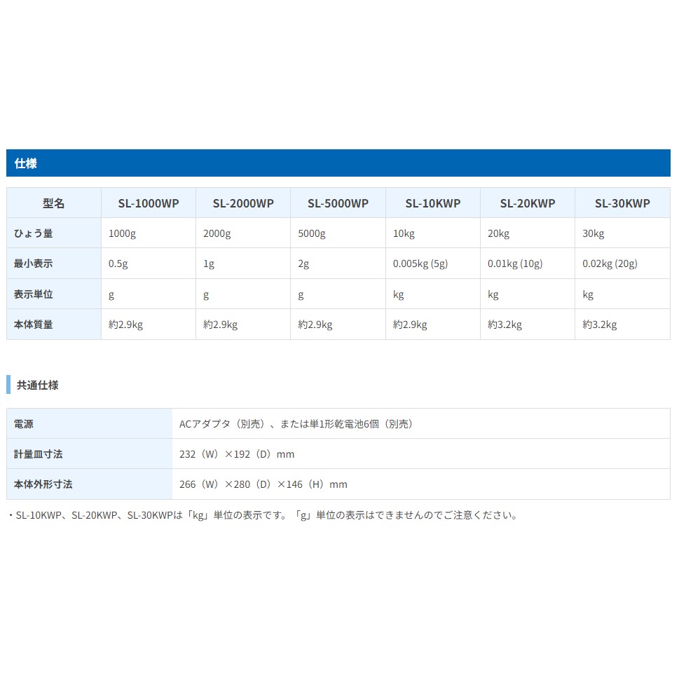 SL2000WP-JA (ひょう量2000g: 最小表示:1g) はこちら