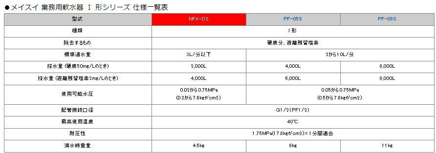 ●メイスイ 業務用軟水器 I 形シリーズ 仕様一覧表