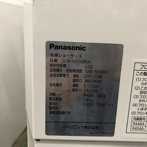 【オークション番号07】冷凍ショーケース パナソニック(Panasonic) SCR-VD10NA 幅1065×奥行778×高さ1124