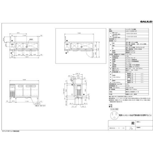 【入れ替えキャンペーン商品】LCU-150RM2-EF【フクシマガリレイ】横型超薄型冷蔵庫・センターフリー 幅1500×奥行450×高さ800 単相100V