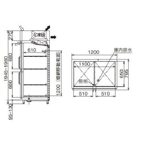 【入れ替えキャンペーン商品】GGD-120GX(旧:GGD-120AG) 【フクシマガリレイ】ノンフロン冷凍機内蔵型リーチインショーケース 外装ステンレス 幅1200×奥行795×高さ1950 単相100V