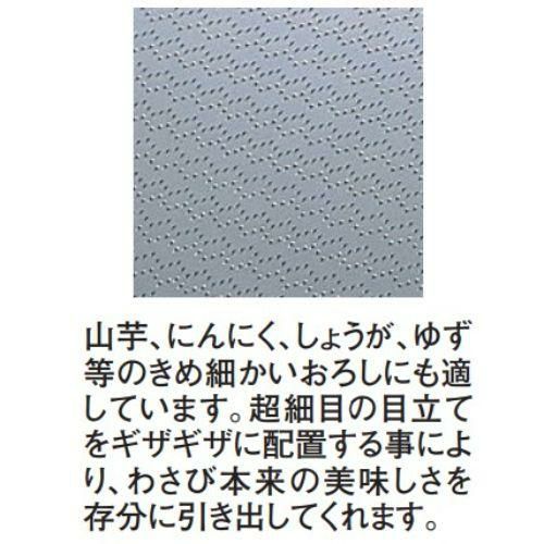 山芋、にんにく、しょうが、ゆず等のきめ細かいおろしにも適しています。超細目の目立てをギザギザに配置する事により、わさび本来の美味しさを存分に引き出してくれます。