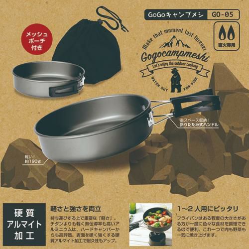 GO-05 GoGoキャンプメシ ポータブルキャンピングフライパン 19cm (メッシュポーチ付)