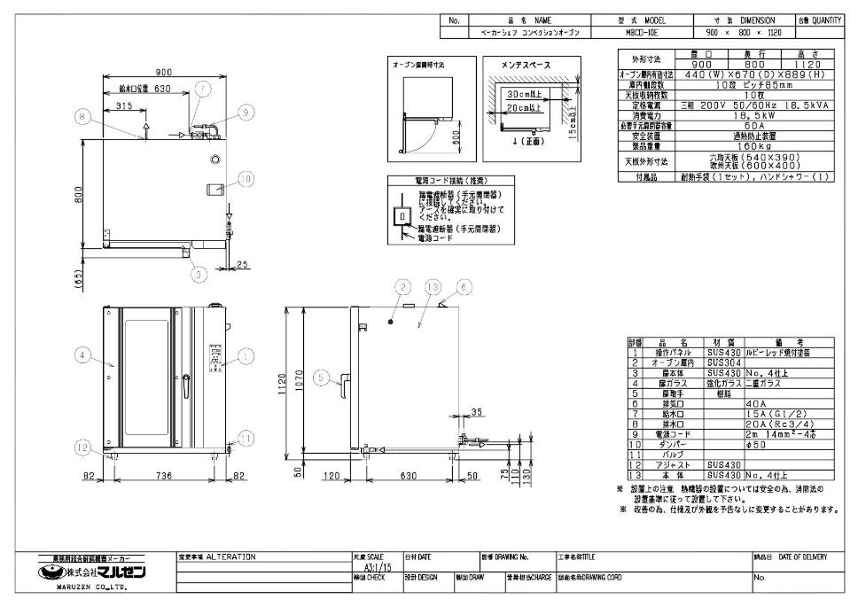商品名:ベーカーシェフ コンベクションオーブン W900×D800×H1120
