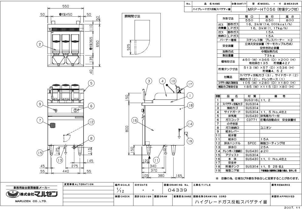 商品名:ガス反転スパゲティ釜 W550×D650×H800