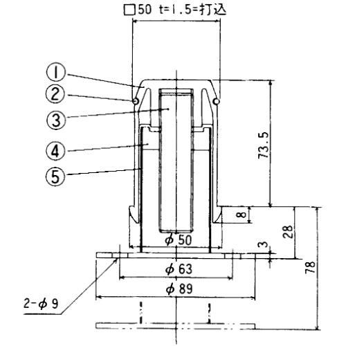 商品名:重量角パイプ用アジャスト脚 TO-108-50KF YZ0004