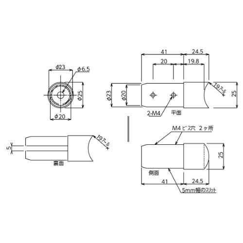 ●丸パイプ脚Φ38mmに丸パイプΦ25mmを接続できます。受金具(TO-125H)とセットで使用します。