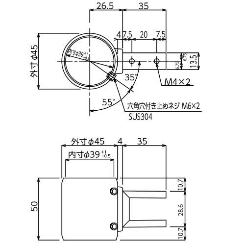 SUS304 長角パイプ用一方継手 ※上下溶接 TO-126B-1N-W TA4938