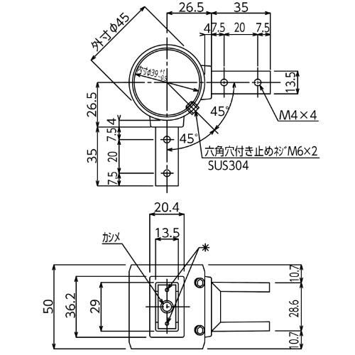 SUS304 長角パイプ用二方継手 ※上下溶接 TO-126B-2N-W TA4939