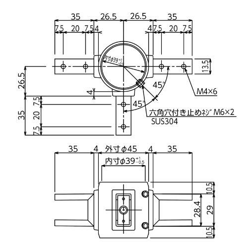 SUS304 長角パイプ用三方継手 ※上下溶接 TO-126B-3N-W TA4940