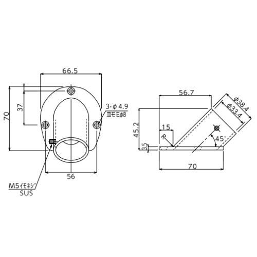 ●パイプを45度の角度をつけて取付けできる金具です