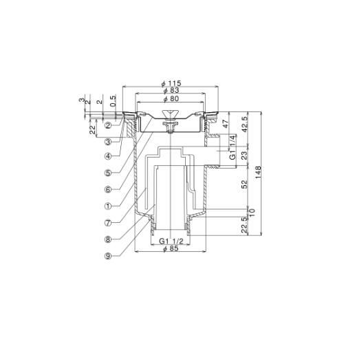 小型排水トラップ G1-1/2ネジ オーバーフロー付 A蓋仕様 TO-197A(S)