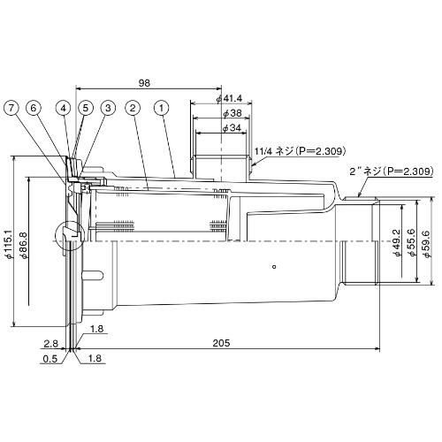 商品名:小型排水トラップ G2ネジ オーバーフロー付 A蓋樹脂カゴ仕様 TO-198NLAP